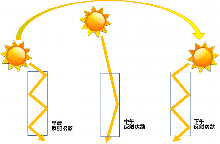 自然光在導(dǎo)光管內(nèi)并非直線前行的,而是通過數(shù)次的反射后才到達(dá)出光口。光線的每一次反射都會損耗一定的能量。導(dǎo)光管延伸的越長,反射的次數(shù)越多,光損量就越高。